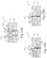 FIG. 19A depicts a cross-sectional view of a tissue having received the unidirectional barbed suture ofFIG. 16 within a tissue opening;