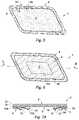 In embodiments not shown, thefirst skirt4 could be provided with one or more tabs, positioned anywhere along the length of its inner edge, for example positioned along the mid-line of a side of the inner edge where a minimal amount of force will create a greater separation between thefirst skirt4 and thereinforcement layer2 along that side of thefirst skirt4.