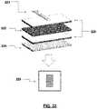 FIG. 22 is a diagram of a portion of an EL device of the invention used to image an object and having a phosphor layer sandwiched between dielectric layers on a transparent electrode.
