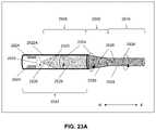 FIGS. 22A and 22B are block diagrams illustrating example, non-limiting embodiments of a waveguide device for launching hybrid waves in accordance with various aspects described herein.