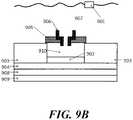 FIG. 9A,FIG. 9B andFIG. 9C show examples of nanopore detectors, whereFIG. 9A has the nanopore disposed upon the electrode,FIG. 9B has the nanopore inserted in a membrane over a well andFIG. 9C has the nanopore over a protruding electrode;