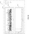 FIG. 25 throughFIG. 30 are diagrammatic views of screens showing four analog sensor signals, transfer functions between the signals, analysis of each signal, and operating controls to move and edit throughout the streaming signals obtained from the sensors in accordance with the present disclosure.