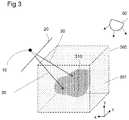 In examples, a rendering algorithm may model an illumination effect by modelling alight source50 illuminating thevolume300. The illumination effect may be taken into account when accumulating the opacity and color values along theray30. Thelight source50 may be a point source, a directional light source, or may comprise a light map. The simulation light source may also be any other kind of light source—e.g. a model of any object which emits light—or a combination of multiple different light sources. In some examples, parts of the volumetric dataset itself may emit light. In some examples, the light source may comprise a high definition light map. The light map in some examples may have six sides corresponding to outer sides of the volumetric dataset where the volume is cuboidal, for example.