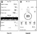 FIGS. 9B and 9C show other screenshots from the app running on thesmartphone4 providing other data, e.g. engine rpm, driving time, distance, current speed maximum speed, average speed, engine load, coolant temperature, etc, about the current journey being made by a vehicle.