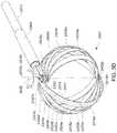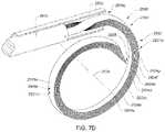 FIG. 7J shows a portion of aflexible circuit structure2680 that has been secured to the providedelongate member2604intofFIG. 7I that has been distorted or deformed in accordance withblock2704. In this example embodiment, a portion of theflexible circuit structure2680 has been bonded to the providedelongate member2604int. In this example embodiment, a portion of the assemblage of the providedelongate member2604intandflexible circuit structure2680 provides thesecond portion2609bgenerally with the desired coiled, scrolled or volute profile comprised by a respective one of the resultingelongate members2604 shown inFIG. 7A. It is noted that when compared with the coiled profile of the providedelongate member2604intshown inFIG. 7I, the assemblage of the providedelongate member2604intandflexible circuit structure2680 shownFIG. 7J has a larger coiled profile. The process of distorting or deforming the providedelongate member2604intcan impart significant stress on theelongate member2604int, sometimes deforming theelongate member2604intwell beyond a yield point of theelongate member2604int. Various factors may require that the coiled profile that is imparted to the providedelongate member2604intas perblock2704 be made relatively smaller than the coiled profile that the providedelongate member2604inthas after the portion of theflexible circuit structure2680 has been secured to the providedelongate member2604intas shown inFIG. 7J. For example, various material properties of the providedelongate member2604intmay have a bearing. The particular material properties of the providedelongate member2604intcan impart a certain amount of “spring-back” to the providedelongate member2604int. Soft materials typically have limited spring-back whereas relatively harder materials (e.g., metals employed in medical devices such as stainless steel, Nitinol) can have a substantially more spring-back. If a providedelongate member2604intthat included a material having a relatively high spring-back were to be distorted or deformed after theflexible circuit structure2680 was bonded to the providedelongate member2604int, the small coiled profile (i.e., similar to that shown inFIG. 7I) that would be required to be imparted on the providedelongate member2604int/flexible circuit structure2680 assemblage to account for the spring-back so as to form the coiled profile shown inFIG. 7J may impart substantially higher stress and strain rates on various features of the flexible circuit structure2680 (e.g., the at least one electrically conductive trace2694) than if the providedelongate member2604intwas distorted or deformed prior to the bonding of the at least oneflexible circuit structure2680 to the providedelongate member2604intas perblock2706. These higher stress and strain rates may increase the risk of failures of various elements of theflexible circuit structure2680 such as the at least one electricallyconductive trace2694 and thereby result in a less robust and reliable device. Further, these resulting higher stress and strain rates may increase the chances of bonding failures when an adhesive is employed to secure a portion of theflexible circuit structure2680 to the providedelongate member2604intprior to distortion or deformation of the providedelongate member2604int. Another possible reason for pre-distorting or pre-deforming the providedelongate member2604intprior to the securement of theflexible circuit structure2680 is to provide a more uniform coiled profile. In some example embodiments, the stiffness of theflexible circuit structure2680 may not be consistent along its respective length. For example, regions of theflexible circuit structure2680 comprising transducer elements2690 (only one called out inFIG. 7J) may be stiffer than other regions of theflexible circuit structure2680 that do not includetransducer elements2690. Coiling the providedelongate element2604intafterflexible circuit structure2680 has been secured to the providedelongate element2604intmay result in an undesired “step-bent” profile along the length of the assemblage.