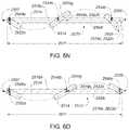 It is noted that relative movement between the ends need not be limited to the distal ends2505. In various example embodiments, relative movement may be provided between at least some of the ends in a first set of the proximal ends2507 of theelongate members2504 to reduce an end-to-end distance between the at least some of the ends in the first set while expandingframe2502 to have a size too large for delivery through thelumen2506cofcatheter sheath2506. In various example embodiments, relative movement may be provided between at least some of the ends in a second set of the distal ends2505 of theelongate members2504 to reduce an end-to-end distance2585 between the at least some of the ends in the second set while expandingframe2502 to have a size too large for delivery through thelumen2506cofcatheter sheath2506. In some of these various embodiments, the relative movement between the at least some of the ends in the first set or between the at least some of the ends in the second set is provided while restraining relative movement between at least some of the ends in the other of the first set and the second set along at least one direction during the expanding offrame2502. In some of these various embodiments, the relative movement between the at least some of the ends in the first set or between the at least some of the ends in the second set is provided while restraining relative movement between the respectiveintermediate portions2509 of at least some ofelongate members2504 during the expanding offrame2502. In some of these various embodiments, the relative movement between the at least some of the ends in the first set or between the at least some of the ends in the second set is provided while decreasing a distance between the respectivedistal end2505 and the respectiveproximal end2507 of each of at least some of the plurality ofelongate members2504 during the expanding offrame2502. For example, as compared betweenFIGS. 6I and 6M, a distance between the respectivedistal end2505 and the respectiveproximal end2507 of each of various ones of theelongate members2504 is reduced as the end-to-end distance2585 between the distal ends2505 is reduced.