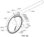 In some embodiments, each of theelongate members2904 is a resilient member that stores potential or spring energy when confined in a confining structure (e.g., catheter sheath2906) in the unexpanded configuration. Upon being advanced from the confining structure, at least some of the potential or spring energy is released to cause thestructure2904 to assume a lower energy state defined by the expanded configuration. InFIG. 10B, each of at least some of theelongate members2904 is physically coupled to controlmember2960aof anexpansion control actuator2960, a portion of which may, in some embodiments, extend along a path throughshaft member2910 orcatheter sheath2906. In some embodiments, theexpansion control actuator2960 is located onhandle portion2903. In some embodiments, theexpansion control actuator2960 is operable to impart force (e.g., tensile force) to controlmember2960asufficient to cause theintermediate portions2909 of various ones of theelongate members2904 to buckle outwardly from thefirst axis2935 to movestructure2902 into the expanded configuration. In various embodiments,control member2960acan include a flexible control line/wire/cable, a control rod or other force transmission members by way of non-limiting example. In some embodiments, the respectivedistal end2905 of each of at least some of theelongate members2904 is physically coupled (i.e., directly or indirectly) tocontrol member2960a. In some embodiments, thecontrol member2960ais physically coupled (i.e., directly or indirectly) to each of various ones of theelongate members2904 at a location between the respective proximal anddistal ends2907,2905 of each of the various ones of theelongate members2904. For example, asingle elongate member2904 may form two diametrically opposed portions of thestructure2902, with thecontrol member2960aphysically coupled (i.e., directly or indirectly) at a location on theelongate member2904 between the two diametrically opposed portions. Other embodiments may employ other mechanisms or modes of operation for moving a structure (e.g., structure2902) from an unexpanded configuration to an expanded configuration.