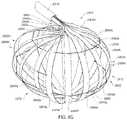 As compared betweenFIGS. 6N and 6O, tension applied to thesecond portion2541bofflexible line2540ccauses at least one of the locations2544 along the respective geodesic of the second elongate member2504ithat is crossed by therespective geodesic2514 of the firstelongate member2504gin the first fannedarray2570 to be repositioned along therespective geodesic2514 of the second elongate member2504ito assume a position in the second fannedarray2572 as shown by thecorresponding crossing locations2546. In various embodiments, at least one of the firstelongate member2504gand the second elongate member2504iis repositioned by the elongate member manipulator2550 (not shown inFIGS. 6N and 6O) to cause a least one of the locations2544 along the respective geodesic of the second elongate member2504ithat is crossed by therespective geodesic2514 of the firstelongate member2504gin the first fannedarray2570 to be repositioned along therespective geodesic2514 of the second elongate member2504iinto the second fannedarray2572. In this illustrated embodiment, theelongate member manipulator2550 causes thefirst location2544calong therespective geodesic2514 of the second elongate member2504ias shown inFIG. 6N to be repositioned relatively closer to the respectivedistal end2505 of the second elongate member2504ias shown bydistal crossing location2546cinFIG. 6O. In this illustrated embodiment, the respectivedistal ends2505 of various ones ofelongate members2504 are spaced apart with respect to one another in the first fannedarray2570 as best shown inFIG. 6J by a first end-to-end distance2585 (only one called out). In this embodiment,elongate member manipulator2550 is employed to vary a distance between at least some of the distal ends2505 and at least one of the crossing locations to manipulate the first fannedarray2570 into the second fannedarray2572. In this embodiment,elongate member manipulator2550 is employed to reduce an end-to-end distance2585 between the respectivedistal ends2505 of at least some of theelongate members2504 to manipulate the first fannedarray2570 into the second fannedarray2572. In this example embodiment,elongate member manipulator2550 is employed to reduce an end-to-end distance2585 between the respectivedistal ends2505 of at least some of theelongate members2504 while varying a respective distance between at least one of the crossing locations and each of the distal ends2505 of the at least some of theelongate members2504. It is noted that in some embodiments, the respective distance between the at least one of the crossing locations and each of the distal ends2505 of the at least some of theelongate members2504 may be varied by a different amount for each of the at least some of the elongate members while the respective end-to-end distance2585 is reduced. For example, the respective distance between the at least one crossing location and a first one of the distal ends2505 may be varied by a first amount and the respective distance between the at least one crossing location and a second one of the distal ends2505 may be varied by a second amount different than the first amount. In some embodiments, the first and second amounts vary to expandframe2502 by different amounts in different directions.