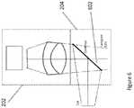 In an embodiment of the eye imaging system, the lens for the camera is designed to take into account the optics associated with theupper module202 and thelower module204. This is accomplished by designing the camera to include the optics in theupper module202 and optics in thelower module204, so that a high MTF image is produced, at the image sensor in the camera, of the wearer's eye. In yet a further embodiment, the camera lens is provided with a large depth of field to eliminate the need for focusing the camera to enable sharp image of the eye to be captured. Where a large depth of field is typically provided by a high f/# lens (e.g. f/#>5). In this case, the reduced light gathering associated with high f/# lenses is compensated by the inclusion of a dedicated eye light to enable a bright image of the eye to be captured. Further, the brightness of the dedicated eye light can be modulated and synchronized with the capture of eye images so that the dedicated eye light has a reduced duty cycle and the brightness of infrared light on the wearer's eye is reduced.