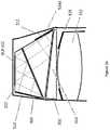 FIG. 5billustrates an upperoptical module202 with a darklight trap514a. As described in connection withFIGS. 4 and 4a, image light can be generated from a DLP when using a TIR and corrective lens configuration. The upper module may be mounted in aHWC housing510 and thehousing510 may include a darklight trap514a. The darklight trap514ais generally positioned/constructed/formed in a position that is optically aligned with the dark lightoptical axis512. As illustrated, the dark light trap may have depth such that the trap internally reflects dark light in an attempt to further absorb the light and prevent the dark light from combining with the image light that passes through the field lens. The dark light trap may be of a shape and depth such that it absorbs the dark light. In addition, the darklight trap514b, in embodiments, may be made of light absorbing materials or coated with light absorbing materials. In embodiments, the recessedlight trap514amay include baffles to block a view of the dark state light. This may be combined with black surfaces and textured or fibrous surfaces to help absorb the light. The baffles can be part of the light trap, associated with the housing, or field lens, etc.