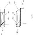 FIGS. 28a, 28band 28cshow illustrations of the various positions of the DLP mirrors.FIG. 28ashows the DLP mirrors in the “on”state2815. With the mirror in the “on”state2815,illumination light2810 is reflected along anoptical axis2820 that extends into the loweroptical module204.FIG. 28bshows the DLP mirrors in the “off”state2825. With the mirror in the “off”state2825,illumination light2810 is reflected along anoptical axis2830 that is substantially to the side ofoptical axis2820 so that the “off” state light is directed toward a dark light trap as has been described herein elsewhere.FIG. 28cshows the DLP mirrors in a third position, which occurs when no power is applied to the DLP. This “no power” state differs from the “on” and “off” states in that the mirror edges are not in contact with the substrate and as such are less accurately positioned.FIG. 28cshows all of the DLP mirrors in the “no power”state2835. The “no power” state is achieved by simultaneously setting the voltage to zero for the “on” contact and “off” contact for a DLP mirror, as a result, the mirror returns to a no stress position where the DLP mirror is in the plane of the DLP platform as shown inFIG. 28c. Although not normally done, it is also possible to apply the “no power” state to individual DLP mirrors. When the DLP mirrors are in the “no power” state they do not contribute image content. Instead, as shown inFIG. 28c, when the DLP mirrors are in the “no power” state, theillumination light2810 is reflected along anoptical axis2840 that is between theoptical axes2820 and2830 that are respectively associated with the “on” and “off” states and as such this light doesn't contribute to the displayed image as a bright or dark pixel. This light can however contribute scattered light into the loweroptical module204 and as a result the displayed image contrast can be reduced or artifacts can be created in the image that detract from the image content. Consequently, it is generally desirable, in embodiments, to limit the time associated with the “no power” state to times when images are not displayed or to reduce the time associated with having DLP mirrors in the “no power” state so that the effect of the scattered light is reduced.