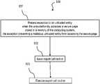Turning now toFIG. 5A, aprocess flow550 for an import operation is generally shown according to one or more embodiments of the present invention. Atblock552, responsive to a secure entity accessing a secure page that has been paged-in by a untrusted entity of a computing system, a hardware interface of the computing system presents an exception to the untrusted entity of the computing system. The exception prevents an untrusted entity from accessing the secure page. Atblock554, the untrusted entity issues an import call routine, which is described further herein. Atblock556, a secure interface control of the computing system executes the import call routine.