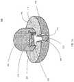 As shown inFIGS. 4aand 4b, acap fitting410 may be provided as a component of thereceptacle400 to secure the receptacle to a wearable article. When the receptacle is attached to a wearable article, the cap fitting410 is mounted around theprotrusion portion402 inFIG. 4b, as shown by dotted line A-B, on the exterior of the wearable article. Thecap fitting410 presses against the wearable article at the base portion (204 inFIG. 2a) to hold the base portion against the wearable article. Cap fitting410 may include a locking mechanism, such as one ormore grooves418 to rotatably engage a corresponding one ormore ridges416 of theprotrusion portion402 e.g. in a cam lock type mechanism, as shown inFIG. 2a. Other cylindrical fasteners or locking mechanisms are possible to secure the cap fitting to the protrusion portion of the receptacle. Thecap fitting410 may also include one ormore channel markings414 to indicate the location of thechannel412 of thereceptacle400, as shown inFIG. 4b.