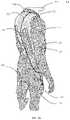 In some implementations, the strand may be coupled to the wearable article by a variety offasteners724, such as hook and loop, snaps, straps, flaps, adhesives, or the strand may be directly sewn onto the wearable article. In some implementations, no fasteners may be provided to adhere the strand to the wearable article. In still other implementations at least some of the strand may be fastened to the exterior surface of the wearable article rather than underneath the wearable article. The strand may include acable segment722 coupled to the control unit. The cable strand segment may be thicker than the strand segments that connect the receptacles to each other.