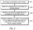In order to determine a location of a smart device,server109accesses database107 to determine a smart device number or MAC address of the smart device for the owner of the vehicle.Server109 then contacts an associated cellular service provider in order to determine a location of the smart device. The location of the smart device is then provided to ALPRcircuitry105 byserver109. If the location of the smart device is near the current location of ALPRcircuitry105, then the owner of the particular vehicle is presumed to be driving the particular vehicle, otherwise, the owner of the particular vehicle is presumed to be not driving the particular vehicle, and the ALPR circuitry will send a warning to the officer.