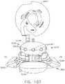 FIG. 109A, illustrates aswitch assembly5020′ that may include thefirst switch arrangement5030 as well as asecond switch arrangement5060′. In at least one form, thesecond switch arrangement5060′ includes aleft switch button5066′ that has aleft pivot arm5067 protruding therefrom. Theleft switch button5066′ may be pivotally mounted on pivot mounts5007 or formations molded or otherwise formed in theleft handle housing5004. Theleft switch button5066′ may have a barrel-like shape or configuration and be selectively pivotable about a left switch axis LS-LS that may be substantially transverse to the first switch axis FS-FS. The clinician may selectively pivot theleft switch button5066′ to bring anactuator portion5069 of theleft switch arm5067 into actuation contact with a correspondingleft contact pad5059 supported within the handle assembly. In the illustrated arrangement, the second switch arrangement only includes theleft switch button5066′ as described above. In alternative forms, the second switch arrangement may only include a right switch button mounted on the right side of the handle housing in the manner illustrated inFIG. 109A. Still other forms of the second switch arrangement may include both right and left switch buttons mounted in the manner illustrated inFIG. 109A.