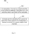 FIG. 11 is a flowchart illustrating anexemplary process900 for forming an embodiment of theairway device100. Atstep902, a mask portion is formed as a distal end of the airway device for example by defining a back plate and a cuff extending about a perimeter of the back plate. The mask portion can be configured and dimensioned to be positioned in a hypopharyngeal area of a patient to cover and seal around a glottis of the patient with or without an inflatable or non-inflatable cuff. An ampulla and at least one sump can be formed in the mask portion, the at least one sump being formed in the back of the mask portion and being in fluid communication with the ampulla through a first port of the ampulla.
