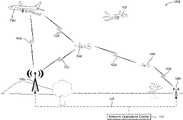 FIG. 7 shows a system diagram that describes one implementation of computing systems for implementing embodiments described herein.System300 includes mobile participant computing device(s)36 (e.g., aerial mobile devices), stationary participant computing device(s)34, and networkoperation center server40.