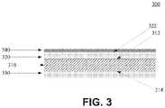 It will be appreciated that thecomposite film300 and all components described in reference to thecomposite film300 as shown inFIG. 3 may have any of the characteristics described herein with reference to corresponding components inFIGS. 1 and 2. In particular, the characteristics of thecomposite film300, thetransparent substrate310, the first anti-reflective coating320, and the secondanti-reflective coating330 shown inFIG. 3 may have any of the corresponding characteristics described herein in reference to composite films200 (100), the transparent substrate210 (110), the first anti-reflective coating220 (120) and the secondanti-reflective coating230 shown inFIG. 2 (FIG. 1), respectively.