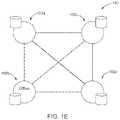 FIG. 1E is a diagram of logical connections or a virtual overlay network for an implementation of a non-limiting embodiment or aspect of a peer-to-peer network of systems or devices ofFIG. 1A;