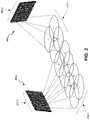 FIG. 2 illustrates an example of a wireless network coverage area produced by RRUs ofRAN140. Each RRU may include one or more antenna arrays, such as a first antenna array200-1 shown for a first RRU and a second antenna array200-2 shown for a second RRU inFIG. 2. Each antenna array200, via respective antenna beams of the antennas of the array, generates respective wireless network coverage areas210. The wireless network coverage areas210 may be composed of multiple cells that are formed by respective antenna beam patterns associated with each of the antennas of the antenna arrays200. Each of the antenna arrays200 shown inFIG. 2 may produce a wireless network coverage area210 within which UEs155 may transmit to, and receive from, antenna arrays200 via wireless RF transmissions. The wireless network coverage areas210 may provide wireless connections forUEs105 over particular geographic areas.