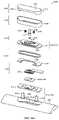 FIGS. 18A & 18B show another example of abutton assembly2000 that may be included in any of the electronic devices described with reference toFIG. 1A, 1B, 2A-2C, 3, 4A, or4B.FIG. 18A shows an exploded view of thebutton assembly1800, andFIG. 18B shows an assembled cross-section of thebutton assembly1800, as viewed from the front or rear face of an electronic device such as thewatch body202 described with reference toFIGS. 2A-2C, 3, 4A, &4B.