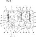 FIG. 3: The underside of the cover plate with the transmission wheels and the slides, in which the contact wheels are displaceable in radial direction against spring force of the drive wheel or pick-up wheel;