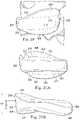 Referring now toFIGS. 21A and 21B, additional details of theextensions306 and308 are shown. More specifically,lower extension306 includes atibial plateau surface330 having afirst portion332 above the dashedline311 and asecond extension portion334. Theupper extension308 includes afemur surface320 having afirst portion322 below the dashedline310 and asecond extension portion324. The distance D2′ between the dashedlines310 and311 is approximately 6 mm. The distance D3′ between the inferior most portion ofextension306 and thesuperior extension308 is approximately 12-18 mm. As will be appreciated, for the illustrated embodiment, the posterior end wall as a height of approximately 9.0 mm. Thus, the anterioranti-migration structure302 has a height that is about two times the height of the posterior end of the implant.