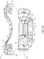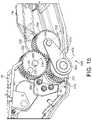 Referring particularly toFIGS. 10 and 15,grabber assembly42 can include agearing system200 to transfer rotational kinetic energy from one of electric motors154 to a corresponding or associated one ofgrabber arms44. For example, gearingsystem200 as shown inFIG. 9 is configured to transfer rotational kinetic energy fromelectric motor154btosecond grabber arm44b. A similar and/or symmetric gearing system can be used at an opposite or distal end ofcarriage46 to transfer rotational kinetic energy fromelectric motor154atofirst grabber arm42.