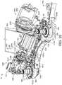 Referring particularly toFIGS. 21 and 22,electric climb system2000 includes an electric motor, shown asclimb motor2002, anoutput gear2004, and a drivengear2006.Output gear2004 can be a spur gear, a helical gear, etc., that is rotatably fixedly coupled with an output driveshaft ofclimb motor2002. Climbmotor2002 can operate to provide rotational kinetic energy tooutput gear2004. Climbmotor2002 may driveoutput gear2004 which meshes, engages, transfers rotational kinetic energy or torque, etc., to drivengear2006.Output gear2004 and drivengear2006 may be configured to rotate about axes that are parallel with each other and spatially offset.Output gear2004 may have a greater number of teeth and a greater diameter than drivengear2006 so that an angular speed of drivengear2006 is greater than an angular speed ofoutput gear2004. In this way, drivengear2006 andoutput gear2004 may form a gear train, a gear assembly, a gear sub-assembly, a drive train, etc., to transfer rotational kinetic energy or torque fromclimb motor2002 to apinion2008.