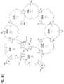 FIG. 45 illustrates yet another alternative positioning of thegates126 and path of the bobbin carrier assemblies for braiding the flat section when using the arrangement of active tracks, passive tracks, and gates illustrated inFIG. 3d. In this arrangement, thegate126E, as well as thegates126K,126L,126M, and126J, are moved to the open position and thegates126N and126S are in the closed position so that they will guide bobbin carriers traveling along the clockwise path of the active track to the passive sub-track and then back to the counterclockwise path of the active track. Similarly, thegate126A is open (as well as thegates126K,126L,126M, and126J) and thegates126I and126Q are in the closed position so that they will guide bobbin carriers traveling along the counterclockwise path of the active track to the passive sub-track and then back to the clockwise path of the active track.