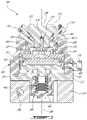 FIG. 21 is an enlarged cross section view of a portion of the valve assembly shown inFIG. 1, this view depicting an example of the purge gas path.