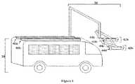 In some embodiments, the vehicle interconnect may be mounted in the rear of the vehicle.FIG. 17 shows an example of an interconnect (300) mounted on the rear of a bus. The scoop portion (301) may be an indentation of the vehicle roof, or may be a feature that is build into the roof. The blade support (302) may be toward the rear of the vehicle interconnect. In alternative embodiments, the vehicle interconnect can be mounted toward a front or middle of the vehicle.