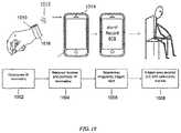 FIG. 10 illustrates one variation of a method for monitoring a subject to determine when to record an electrocardiogram (ECG). InFIG. 10, a subject is wearing a continuous heart rate monitor (configured as awatch1010, including electrodes1016), shown instep1002. The heart rate monitor transmits (wirelessly1012) heart rate information that is received by the smartphone1018, as shown instep1004. The smartphone includes a processor that may analyze theheart rate information1004, and when an irregularity is determined, may indicate1006 to the subject that an ECG should be recorded. InFIG. 10, an ambulatory ECG monitor1014 is attached (as a case having electrodes) to the phone1018. The user may apply the ECG monitor as to their body (e.g. chest, between arms, etc.)1008 to record ECGs that can then be saved and/or transmitted for analysis.