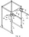 Anaxle34 extends through themount28 and is rotational relative to themount28. Theaxle34 is elongated and has a rotational axis extending along is length. Though not essential, the rotational axis will typically be horizontally orientated and be perpendicular to a longitudinal axis of each of thecolumns14 which are most typically vertically orientated. Afirst arm36 is fixedly attached to theaxle34 such that movement of thefirst arm36 rotates theaxle34. The term “fixedly” herein use generally to define a static coupling and does not require thefirst arm36 to be non-removably attached to theaxle34. Asecond arm38 is rotationally coupled to theaxle34 such that thesecond arm38 can rotate freely around theaxle34 without causing movement of thefirst arm36. Alift angle40, as shown inFIG. 8, is defined between the first36 and second38 arms wherein theaxle34 defines a vertex of thelift angle40. Since thesecond arm38 can rotate freely of theaxle34, thelift angle40 is alterable from 0° to 180° in both directions. That is, the lift angle may be measured between −180° and 180°. Thelift angle40 is approximately 70° inFIG. 7, 0° inFIG. 10, 10° inFIG. 11, and 135° inFIG. 8.