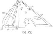 In an embodiment, thecam720 fits within acavity740 of thebarrier556, as illustrated inFIG. 86G. In an embodiment, thecavity740 is bounded byside walls742.Side walls742 render the front of thecavity740 slightly narrower than the width ofcam720. An amount of force is required to pushcam720past side walls742 and intocavity740. After the cam passes theside walls742 it snaps into place in thecavity740. Thecam720 can then rotate incavity740 and will not fall out ofcavity740 or detach fromcavity740 during normal use. Thecam720 is rotatably secured withincavity740. In an embodiment,cavity740 also is bounded at its front portion by a front wall (not shown).