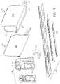 The tray also can include ashelf672 that is located immediately adjacent and in a frontward direction of theforward lip670. Theshelf672 can be curved and can match the curvature of theforward lip670. Theshelf672 includes ahorizontal surface674. Theshelf672 also includes protrusions676 that are perpendicular to thehorizontal surface674 of theshelf672. Theshelf672 and theforward lip670 add strength to the front portion of the pusher tray. In addition, thehorizontal surface674 of theshelf672 serves to close off the bottom portion of the caption pocket that is described later.