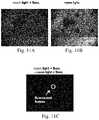 ExampleCorrecting for Ambient LightFIG. 11A-11C illustrate a method for identifying a fluorescence signal in the presence of ambient light. InFIG. 11A a surface including a fluorescent material is subjected to both ambient light and an excitation wavelength generating an ambient light signal and fluorescence signal. Subsequently, the surface is exposed to just ambient light as illustrated inFIG. 11B. The image captured inFIG. 11B corresponding to just an ambient light signal may then be subtracted fromFIG. 11A corresponding to an ambient light and fluorescence signal. The resulting image is presented inFIG. 11C where the bright feature indicated in the figure corresponds to the fluorescence signal.