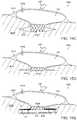 FIGS. 12A-C show illustrations of embodiments of an adhesion matrix having different types of tissue contact apertures.FIG. 12D is an illustration of an adhesion matrix embodiment possessing tissue anchors on its surface.FIG. 12E shows a cross-sectional view of the adhesion matrix ofFIG. 12D.