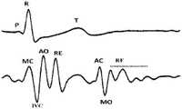 The Vibrocardiogram (VbCG) provides for measurement of the phases of isometric contraction, ejection, systole and diastole obtained from the precordial vibration tracing, with an accuracy as good as that realized with direct cardiac catheterization [79, 80]. Those recordings permit the total energy spectrum of the heart in a displacement form, like the ACG. However, the VbCG signal, is obtained using a microphone, which provides a measure of the velocity of the chest motion. If this signal is integrated, it provides the displacement of the chest wall. The VbCG waveform typically consists of four main deflections [79]. The segment between J2 and L is considered to be the ejection time (ET) and the isometric contraction time (ICT) is considered to be between R left and J2. However, in later studies it has been found that the isometric contraction is happening after the ECG R way. The comparison between the dye dilution and VbCG has been explored and a good correlation of the ejection time has been found (r=0.9).