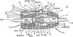 As to particular embodiments, the first valve-biasing member (37) can be configured as a resiliently compressible member (16), such as a spring and for example, a coil spring or a helical spring (51). As to particular embodiments, the helical spring (51) can be disposed about a portion of the first valve (33) to entirely surround that portion of the first valve (33) such that the helical spring (51) and the first valve (33) are coaxial. Thus, the helical spring (51) and the first valve (33) can be disposed in concentric relation.