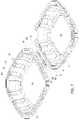 Lid2 includestop portion10.Top portion10 includesexterior surface11 upon which vent13 is disposed.Container1 may includelid sidewall12 extending betweentop portion10 andlid rim3.Lid rim3 circumferentially extends about theperipheral portion4 oflid2. Base rim21 similarly extends about theperiphery22 ofbase20.FIG. 16 depicts exemplary embodiment rim structural features that make the embodiment container not just tamper evident, but also tamper resistant. For purposes of carrying out the invention, a container need not have the exact rim structure shown inFIG. 16. Other rim structures can be employed, such as is shown in the other figures. According to the suggested embodiment ofFIG. 16,rims3,21 engage into a sealed or closed configuration. In this respect,container1 includes engagingrims3,21 that provide for a friction fit between them that tightly closes the container and that cannot be easily pulled apart without rupturing thefrangible line34 more fully described. From the aspect ofFIG. 16 it is seen that in a preferred embodiment,lid rim3 includeslid rim bead53 that comprises a downwardly descending lid rim innervertical wall54, an upwardly extending lid rimouter wall55 and abead bottom segment56.Bead bottom segment56 extends from the bottom57 of lid riminner wall54 and curves into the bottom58 of the lid rimouter wall55.Flange6 preferably extends fromouter wall55 oflid rim3 tolid hinge panel5.