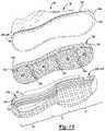 FIG. 13 is an exploded view of the article of footwear ofFIG. 12 showing particulate matter residing within a casing disposed between an outsole and a midsole of a sole structure;