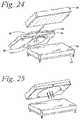 FIG. 23 is similar toFIG. 22 but illustrating a bed skirt which incorporates a removable fastening strip attached to the integrated fastening strips on the mattress and box spring.