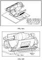 FIG. 13A is an isometric view of application of the drum dermatome (e.g., Padgett dermatome) over the scalpet plate, where the adhesive membrane is applied to the drum of the dermatome before rolling it over the investing plate, under an embodiment.