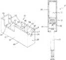 From a specific perspective, the invention of the present application the insulin bottle storage and dispensing system shown inFIGS. 1 through 5 is comprised of ahousing12 for use with aninsulin bottle11 having a top port for access and a syringe13. Thehousing12 is adapted to hold theinsulin bottle11 for storage and align the syringe13 when filling the syringe for use. The housing is rectangular with a closedback14, anopen front16, twoparallel sides18 and aparallel top20 andbottom22. The housing is formed with anupper compartment30 for holding an inverted insulin bottle and alower compartment32 for aligning the syringe when accessing the top of the insulin bottle. The closed back and open front are separated by a first distance. The top and the two parallel sides have front edges parallel with the open front. The bottom of the upper compartment is formed with a lowerinterior shelf36. The lowerinterior shelf36 has a front edge parallel with the open front. Asemi-rectangular cutout38 with a semi-circular interior edge extends inward from the front edge of the lower interior shelf.