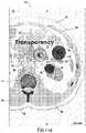 Referring now toFIG. 11B, with the transparency display parameter selected and the desired component (for example component30) selected, the user can then adjust the transparency display parameter by providing a second input at thetouchscreen20 atlocation50 with the computing device indicating that the input has been detected by displaying theicon44 at thelocation50. Moving the second input (i.e. movement72) along thetouchscreen20 to thelocation50′ can adjust the transparency of the selected component (e.g. component30) by either increasing or decreasing a percentage of transparency within an inclusive range from 0% to 100%.FIG. 11B indicates that themovement72 of the input across thetouchscreen20 increases the transparency of the selected component. Movement in an opposite direction relative tomovement72 can cause a decrease in the transparency of the selected component. However, it should be understood that thecomputing device16 can be programmed such that themovement72 of the input along the touchscreen can decreases the transparency of the selected component, with movement in an opposite direction relative tomovement72 can increase the transparency of the selected component. If the input moves a distance L1 then the transparency of the selected component can be set to the maximum (100%) or minimum (0%), depending upon whether themovement72 is causing the transparency display parameter to increase or decrease, respectively.