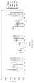 FIG. 36 graphically depicts the coefficient of friction, scratch penetration, applied normal force, and frictional force (y-ordinates) as a function of the length of the applied scratch (x-ordinate) for the thermally treated vials of a Comparative Example;