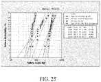 FIG. 25 graphically depicts the failure probability as a function of applied load in a horizontal compression test for vials, according to one or more embodiments shown and described herein;