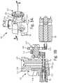 Fan rotating assembly190 includessleeve192 andnozzle rotator194.Sleeve192 includesteeth196.Nozzle rotator194 includesrotation motor198 andpinion200.Teeth196 extend at least partially aroundsleeve192. In some examples, teeth extend 90° aroundsleeve192.Nozzle rotator194 is configured to rotatesleeve192, and thusnozzle38, between the horizontal fan orientation and the vertical fan orientation.Rotation motor198 is mounted onspray tube74 and can be any suitable motor for driving the rotation ofsleeve192, such as a stepper motor.Pinion200 extends fromrotation motor198 and interfaces withteeth196 onsleeve192.Rotation motor198 is connected to a power source, such as power source42 (FIG. 1), bywire202.